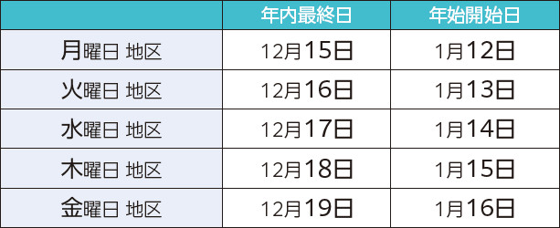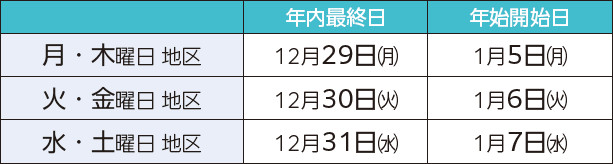 この時期は、ごみの量が多く、収集時間が通常と大きく異なることがあります。当日の朝8時までに、必ずお出しください。