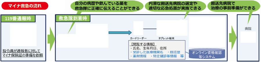 10月1日から救急隊員が傷病者のマイナ保険証を活用し、傷病者の医療情報などを閲覧するマイナ救急が始まります。日頃からマイナ保険証の携行をお願いします。