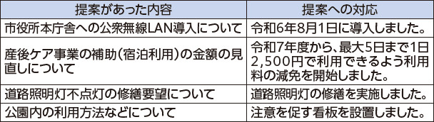 ●昨年度の主な提案内容や提案への対応など