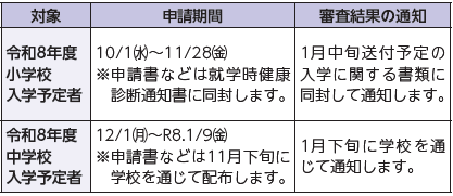 ■令和8年度小中学校入学予定の方へ 就学援助費(新入学用品費)の入学前支給