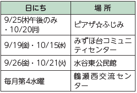 日時:9月28日(日)午前8時30分~正午(予約不要)