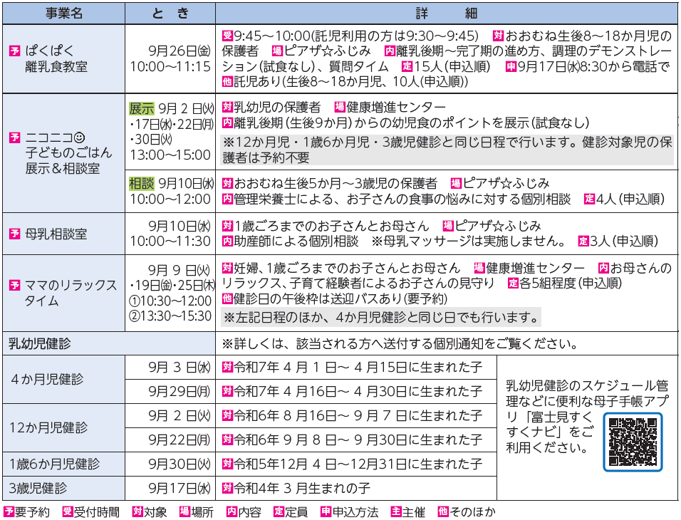 子育て 子育て健康ガイド 18/38 前の記事 次の記事 発行日 : 2025年09月01日 自治体名 : 埼玉県富士見市 広報紙名 : 広報富士見 令和7年9月号 申込先・問合せ:子ども未来応援センター 【電話】049-252-3774【FAX】049-252-3772 ※聴覚障がいの方はファックスでお申し込みください。 Tweet シェアする 【information】子育て 保育所のあそぼう会