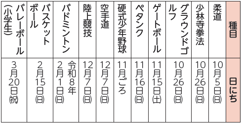 日時:11月1日(土)開会式(午前10時30分から)終了後競技開始、11月2日(日)午前11時15分競技開始