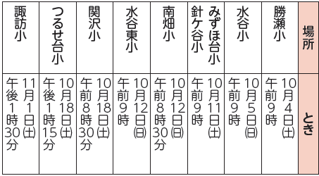 ※雨天時、南畑小・関沢小は中止、そのほかは各小学校体育館で実施