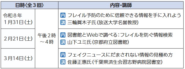 日時:12月13日・20日、令和8年1月10日・17日(各土曜日)午前9時30分~11時30分