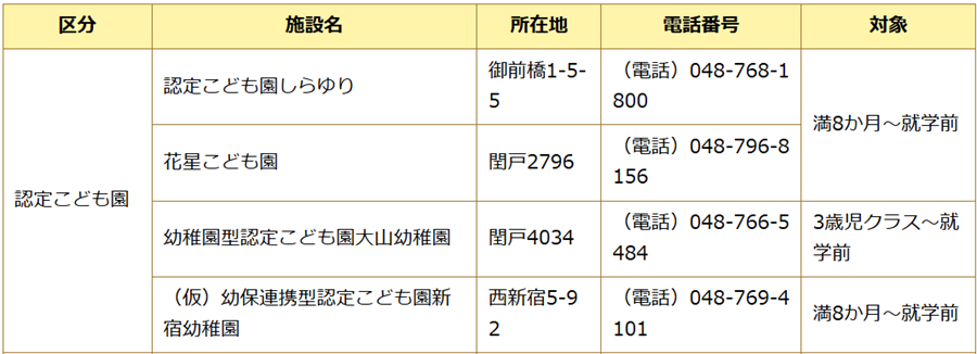 問合せ:保育課保育担当【電話】048-768-3111(内線)159、160
