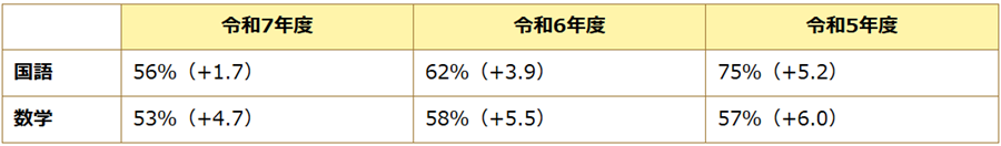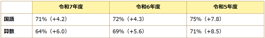 ○全国学力・学習状況調査における過去3年間の平均正答率の推移