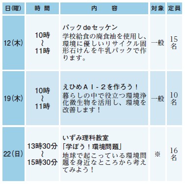 申込み:1月10日(土)9時30分~環境学館いずみへ