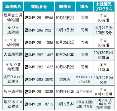 子育て 〔催し〕私立幼稚園運動会 20/41 前の記事 次の記事 発行日 : 2025年09月01日 自治体名 : 埼玉県坂戸市 広報紙名 : 広報さかど 2025年9月号 ※雨天振替日等詳しくは、各幼稚園へお問合せください。 問合せ:保育課 【電話】内線491 Tweet シェアする 〔お知らせ〕腎臓からのSOSを見逃していませんか? 〔催し〕10月5日(日) 地区市民体育祭