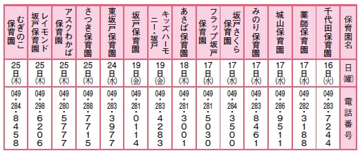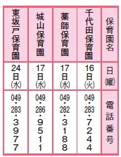 申込み:各園実施日の前日までに保育課へ直接又は電話