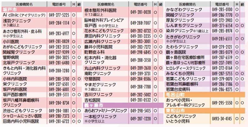 ※下表の医療機関以外で接種する場合は、後日の給付となり、市への手続が必要です。医療機関で全額を支払い、申請書、請求書に、領収書(原本)、接種証明書の写し、通帳等振込口座番号の写しを添付して市民健康センター(〒350-0212 坂戸市石井2327-3)へ郵送してください。