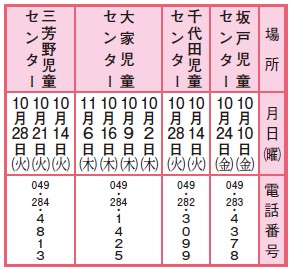 申込み:10月9日(木)9時〜同施設窓口又は電話(電話受付は13時〜)