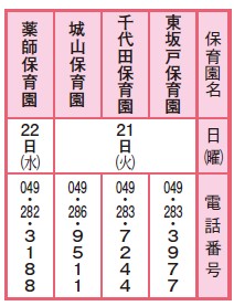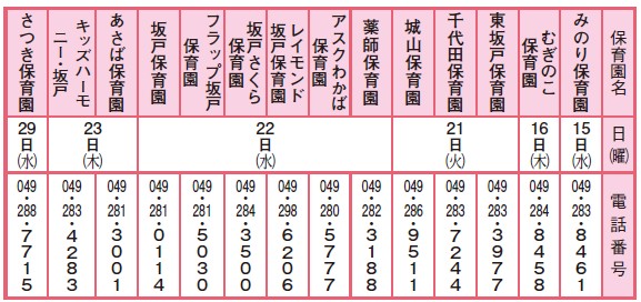 申込み:各園実施日の前日までに保育課へ直接又は電話