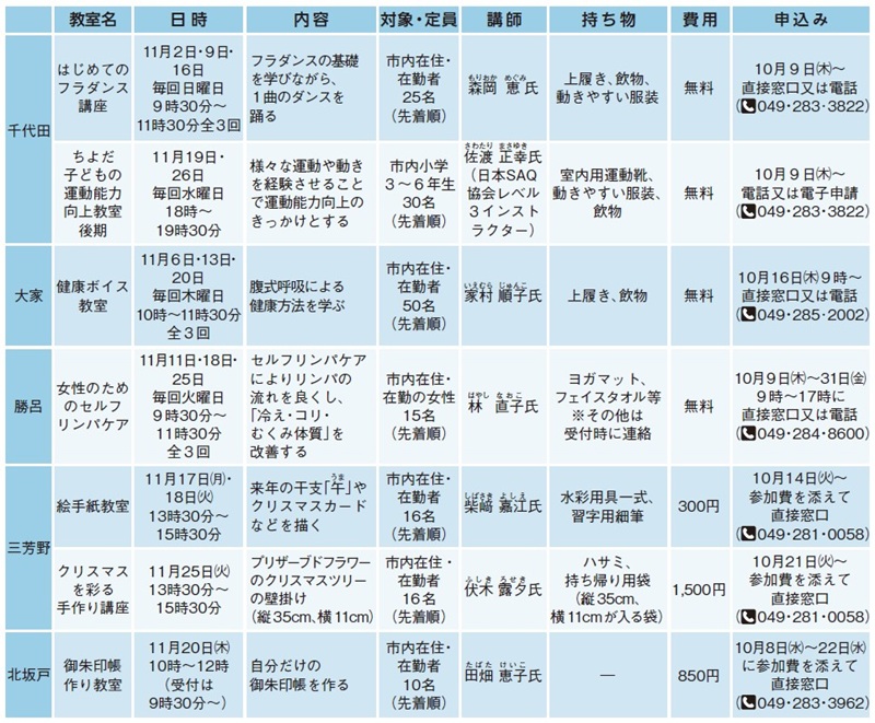 申込み:10月10日(金)までに直接窓口、電話又は電子申請