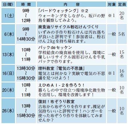申込み:10月10日(金)9時30分~環境学館いずみへ