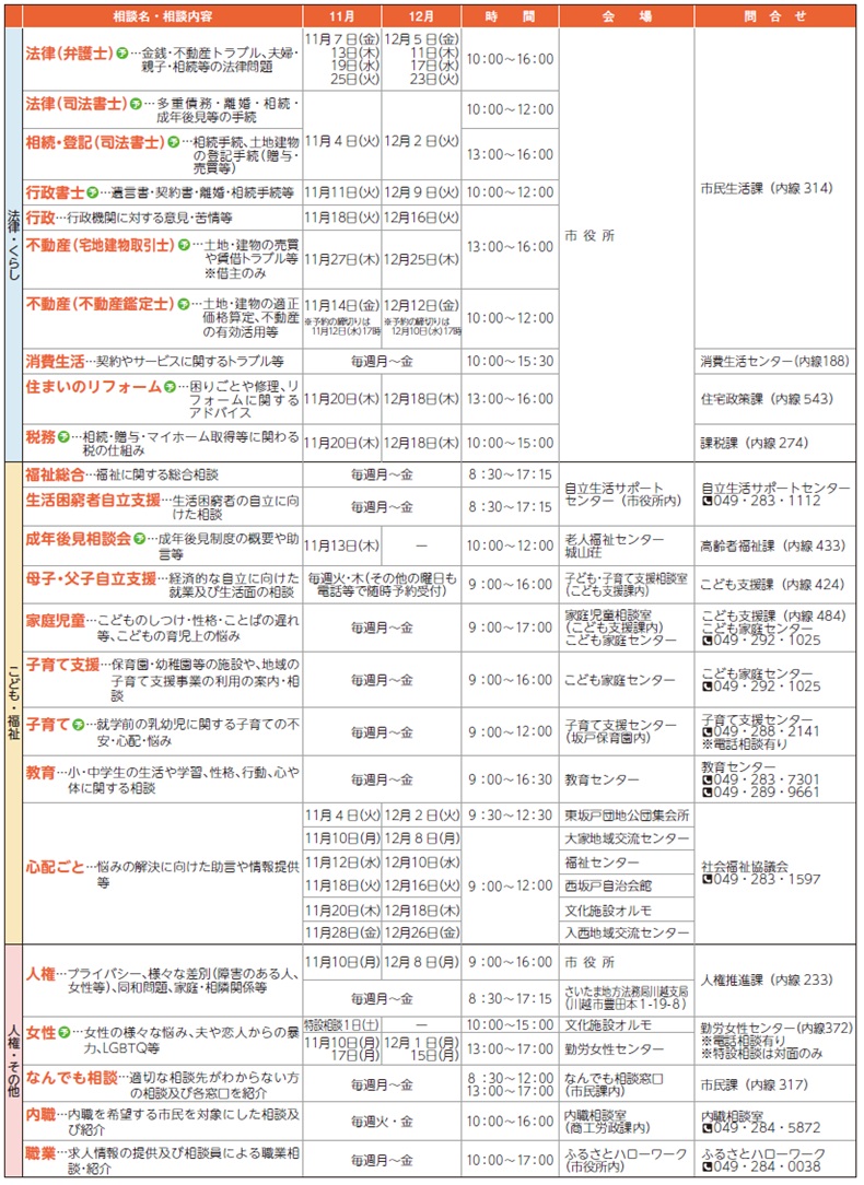 くらし 11・12月 市民相談 41/45 前の記事 次の記事 発行日 : 2025年11月01日 自治体名 : 埼玉県坂戸市 広報紙名 : 広報さかど 2025年11月号 ※(予)…予約制 原則相談日の一週間前から開始。詳しくはお問合せください。 ※各相談とも祝休日を除く。相談時間/12時~13時を除く 問合せ:市役所 【電話】049-283-1331 Tweet シェアする 健康News(ニュース) 文化財めぐり vol.08