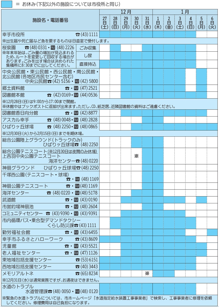 くらし 年末年始の業務案内 14/37 前の記事 次の記事 発行日 : 2025年12月01日 自治体名 : 埼玉県幸手市 広報紙名 : 広報さって 2025年(令和7年)12月号 ※1月6日(火)以降は通常通りになります。 Tweet シェアする 人事行政の運営などの状況 文芸