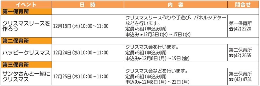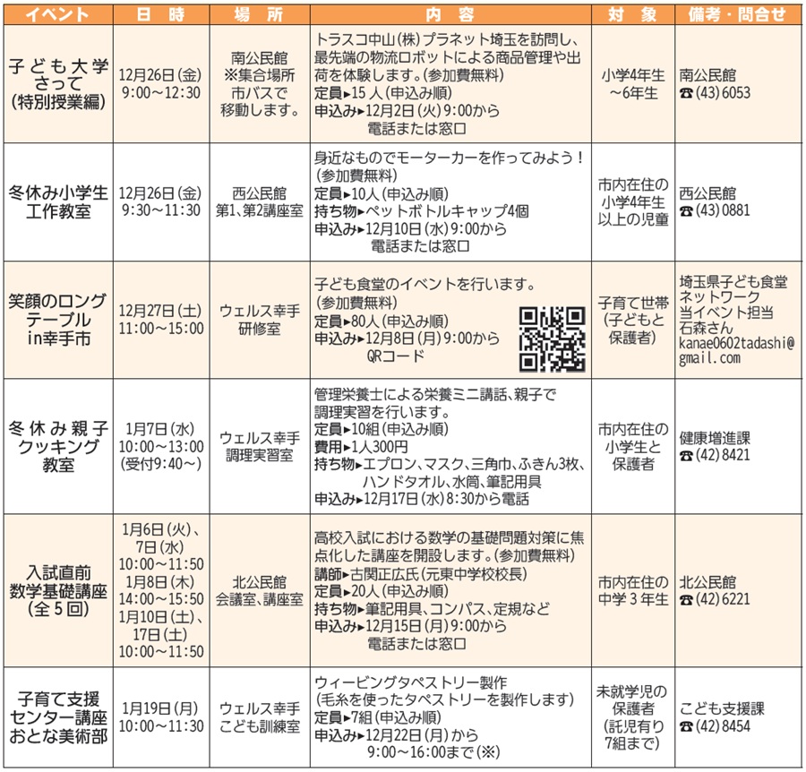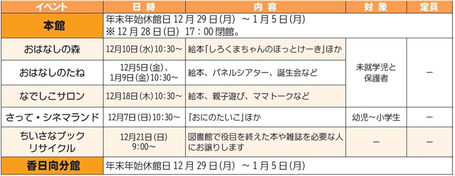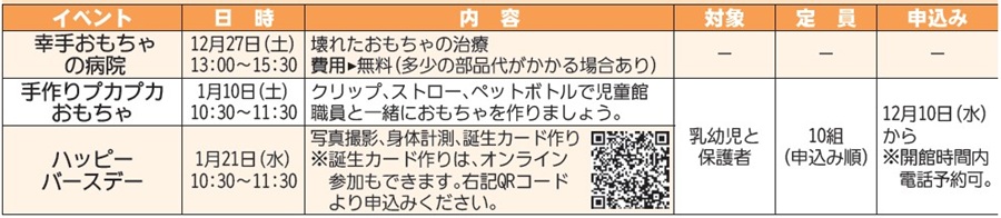 乳幼児~高校生までが主な対象のイベント情報などを掲載します。