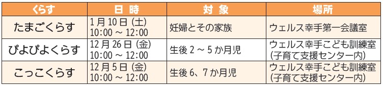 「幸手市で楽しく育児」ができるよう妊娠・子育て期のちょっとした心配や不安を助産師などに相談しながら仲間づくりができる場所です。