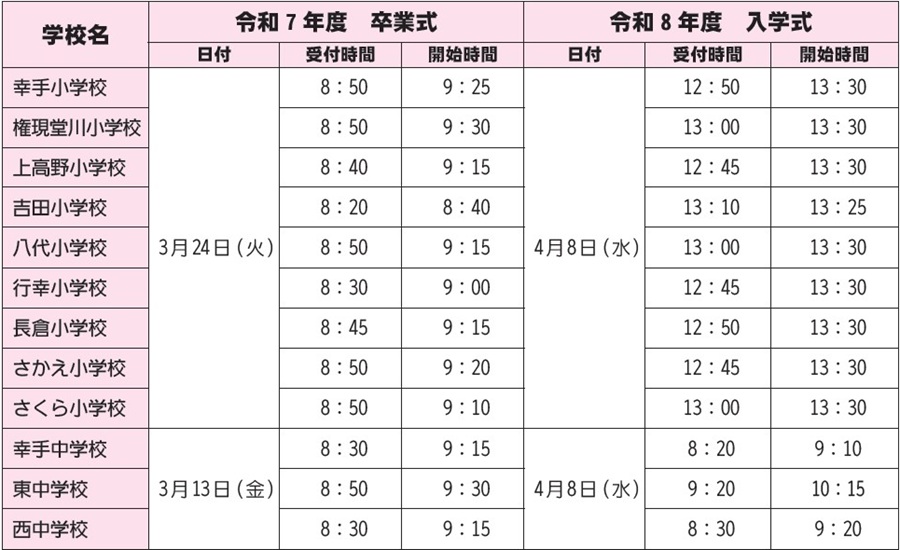 子育て 市内小中学校の卒業式、入学式の開催日程 6/36 前の記事 次の記事 発行日 : 2026年02月01日 自治体名 : 埼玉県幸手市 広報紙名 : 広報さって 2026年(令和8年)2月号 問合せ:学校教育課 【電話】43-1111 内線634 Tweet シェアする 幸手市ファミリー・サポート・センター 協力会員大募集! くらしの110番-トラブル情報-