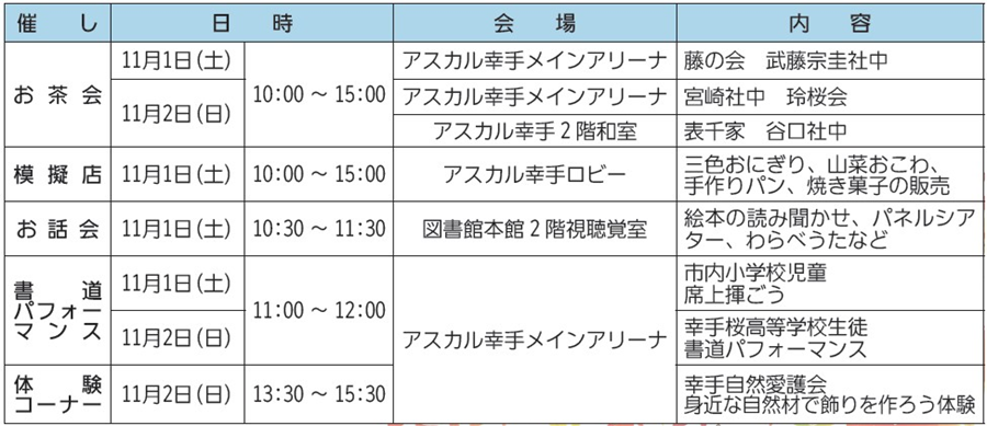 問合せ:幸手市文化祭実行委員会事務局(北公民館内)