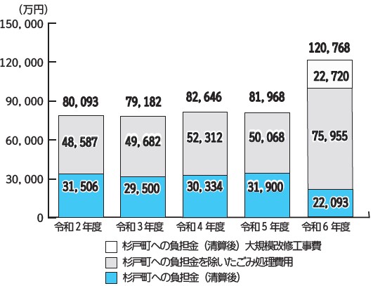 また、杉戸町への負担金を除いたごみ処理費用は、粗大ごみ処理施設などの補修工事費用が多くなったことにより増加しました。