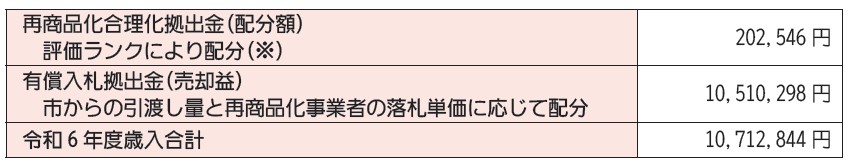 ※評価ランクは、A(資源化に支障がない)、B(資源化に若干の支障が生じる)、D(著しく分別基準から外れているので、資源化に支障をきたす)の3段階で評価されます。令和6年度分再商品化合理化拠出金は、上記のとおり発生しました。