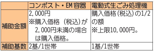 幸手市では、家庭から排出される生ごみの減量化を促進するため、コンポストや電動式生ごみ処理機などの購入費の一部を補助しています。