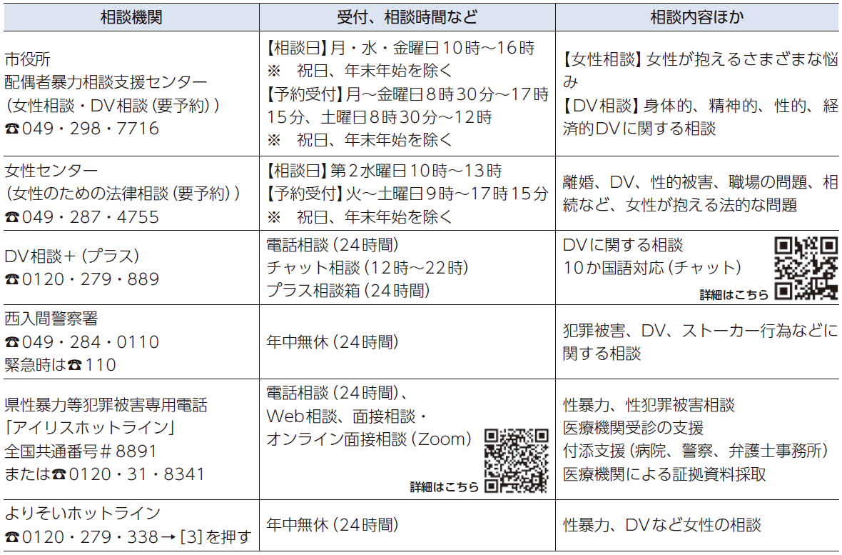 無料で相談できる下記の相談機関では、被害を受けている方の安全と自立のために必要な支援を行っています。