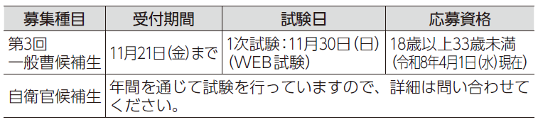 ※各種資料の請求は、自衛隊埼玉地方協力本部ホームページ、入間地域事務所または川越募集案内所へ連絡してください