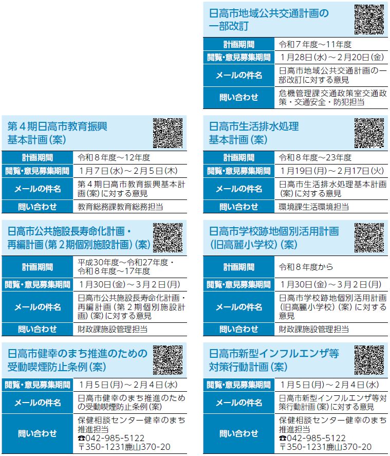 各計画(案)・条例(案)に対する意見を募集します。