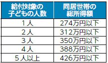 対象:県内在住で平成19年4月2日以降に生まれた乳幼児および小・中・高等学校ならびに各種学校等に在学する交通遺児等で、下表に掲げる世帯に属する人