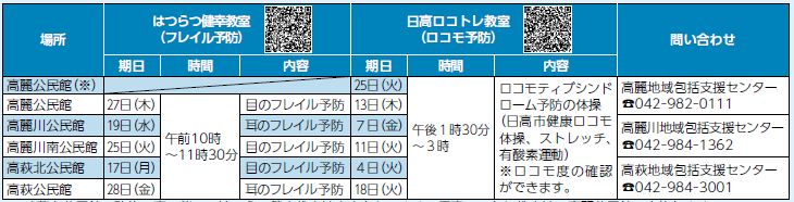 講座 11月の地域包括支援センターの教室 32/41 前の記事 次の記事 発行日 : 2025年10月01日 自治体名 : 埼玉県日高市 広報紙名 : 広報ひだか 令和7年10月号 ■共通事項 対象:65歳以上の市民 費用・申し込み:無料・不要 ※武蔵台公民館の改修工事に伴い、はつらつ健幸教室は中止となります。日高ロコトレ教室は、高麗公民館で実施します。 Tweet シェアする ひだかインフォメーションー近隣市イベントー 市立図書館から