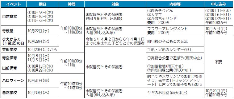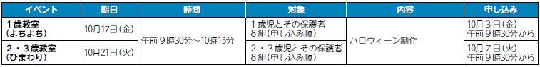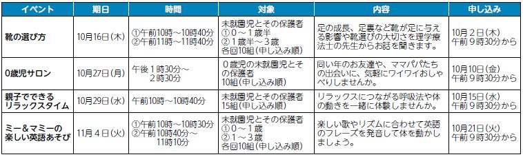 イベント日の10月27日(月)は午後1時から2時30分まで通常利用はできません。