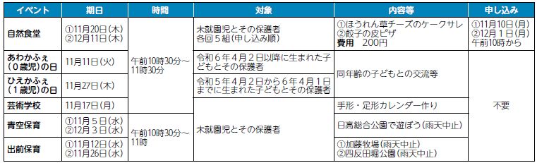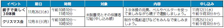 利用は予約不要です。イベント日の11月18日(火)・28日(金)は午前の通常利用はできません。