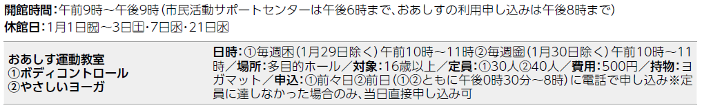 ○申し込みが必要ない講座やイベントは、当日直接会場へお越しください。