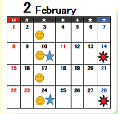 日時(にちじ):2月(にがつ)14日(じゅうよっか)(土)・28日(にじゅうはちにち)(土)午後(ごご)2時(じ)~4時(じ)