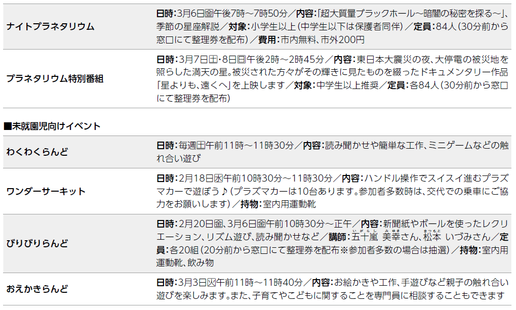 掲載期間:2月1日~3月7日(申し込み期間中のものも含む)