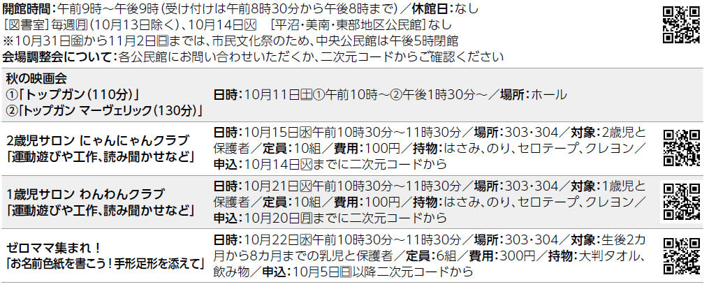 ○申し込みが必要ない講座やイベントは、当日直接会場へお越しください。