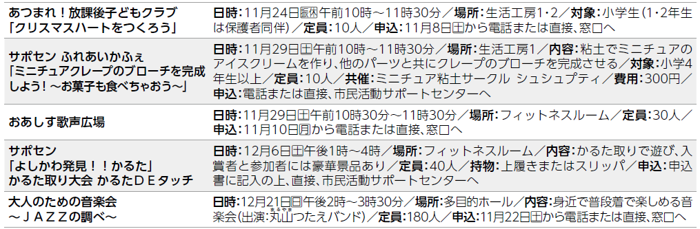 掲載期間:11月1日~12月7日(申し込み期間中のものも含む)