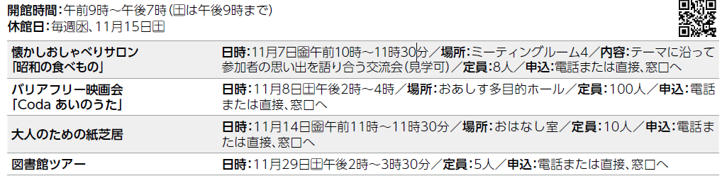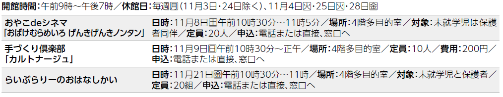 ○申し込みが必要ない講座やイベントは、当日直接会場へお越しください。