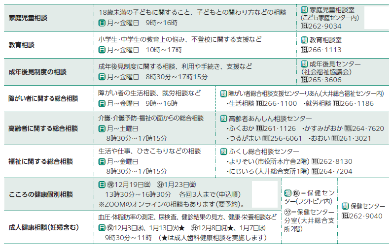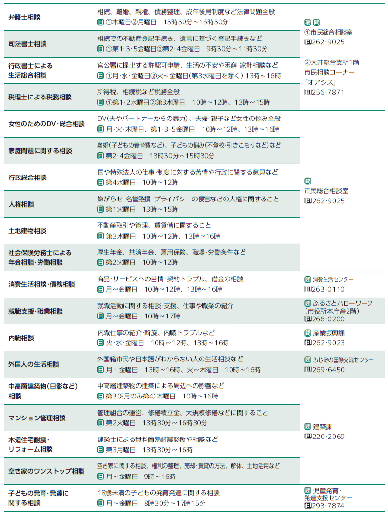 くらし 各種相談 43/50 前の記事 次の記事 発行日 : 2025年12月01日 自治体名 : 埼玉県ふじみ野市 広報紙名 : 市報ふじみ野 令和7年12月号 ※予約が必要な相談もありますので、事前に担当課へお電話ください。 Tweet シェアする だいすきっ!ふじみ野 読者のひろば~イベント 救急メモ