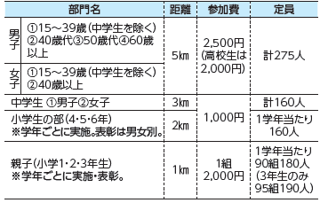 部門・距離・定員・参加費:下表のとおり