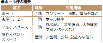 本格的な音響設備を有し、日本では数少ないファツィオ○ホール棟の概要リ社製グランドピアノを設置した322席のホールをはじめ、多目的に利用できるマルチスペースや屋外イベントスペースを備えたホール棟が、9月27日(土)にリニューアルオープンしました。詳しくはステラ・イーストのホームページをご覧ください。