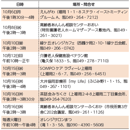 くらし オレンジカフェ 37/54 前の記事 次の記事 発行日 : 2025年10月01日 自治体名 : 埼玉県ふじみ野市 広報紙名 : 市報ふじみ野 令和7年10月号 認知症の人と家族、地域住民、専門職などが集う場です。 費用:申し込み時に確認 申込方法:電話で申し込む 問合せ:高齢福祉課 (【電話】049・262・9038) Tweet シェアする ★ふじみ野市誕生20周年記念事業 地酒プロジェクト「河岸の蔵」完成 家族介護教室・家族交流会