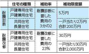 対象建築物:建築確認を取得し、昭和56年5月31日以前に着工された建築物のうち、明らかに建築基準法違反がないもので、戸建専用住宅、戸建兼用住宅、共同住宅、長屋住宅