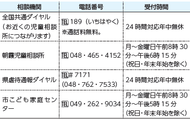「児童虐待かもしれない」と思ったら、下記の相談機関までご連絡ください。