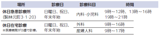 ※平日夜間の小児時間外救急診療所は、現在休診しています。