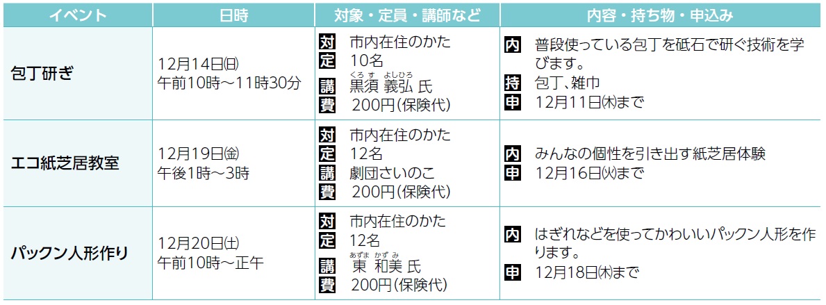 休館日:月曜日、12/1・8・13・15・22、12/29〜1/3・5