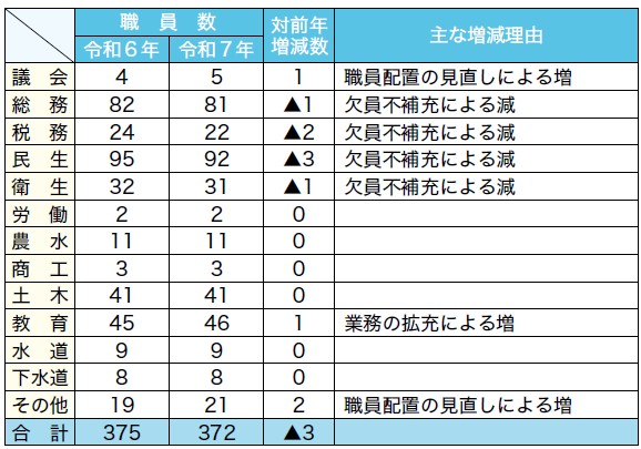 (3)部門別職員数の状況と主な増減理由(各年4月1日現在)
